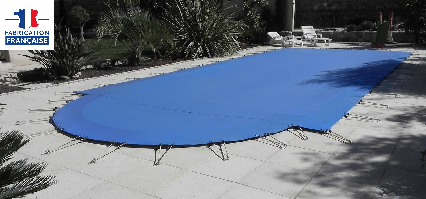 Couverture d'hivernage standard: durant la période de non utilisation, elle doit être correctement pliée, propre et sèche, et rangée dans un local abrité. La couverture sera avec les pitons inox ou autre fixation ainsi que la notice de pose et un bon de garantie. Devis en magasin