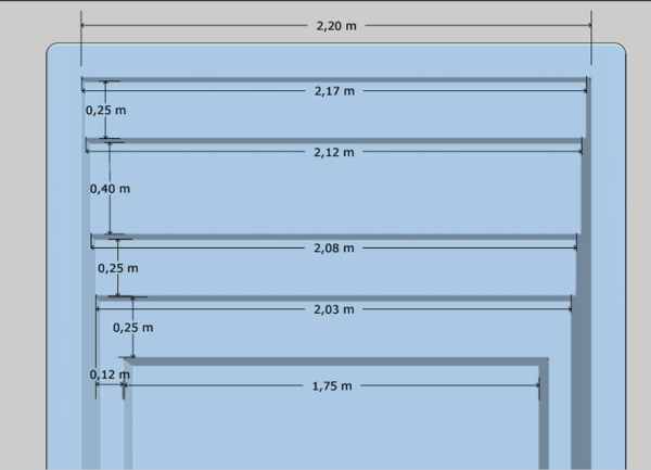 Dimensions : 4.50×2,20×1.40 avec fond plat. Disponible avec ou sans volet immergé. Devis en magasin.